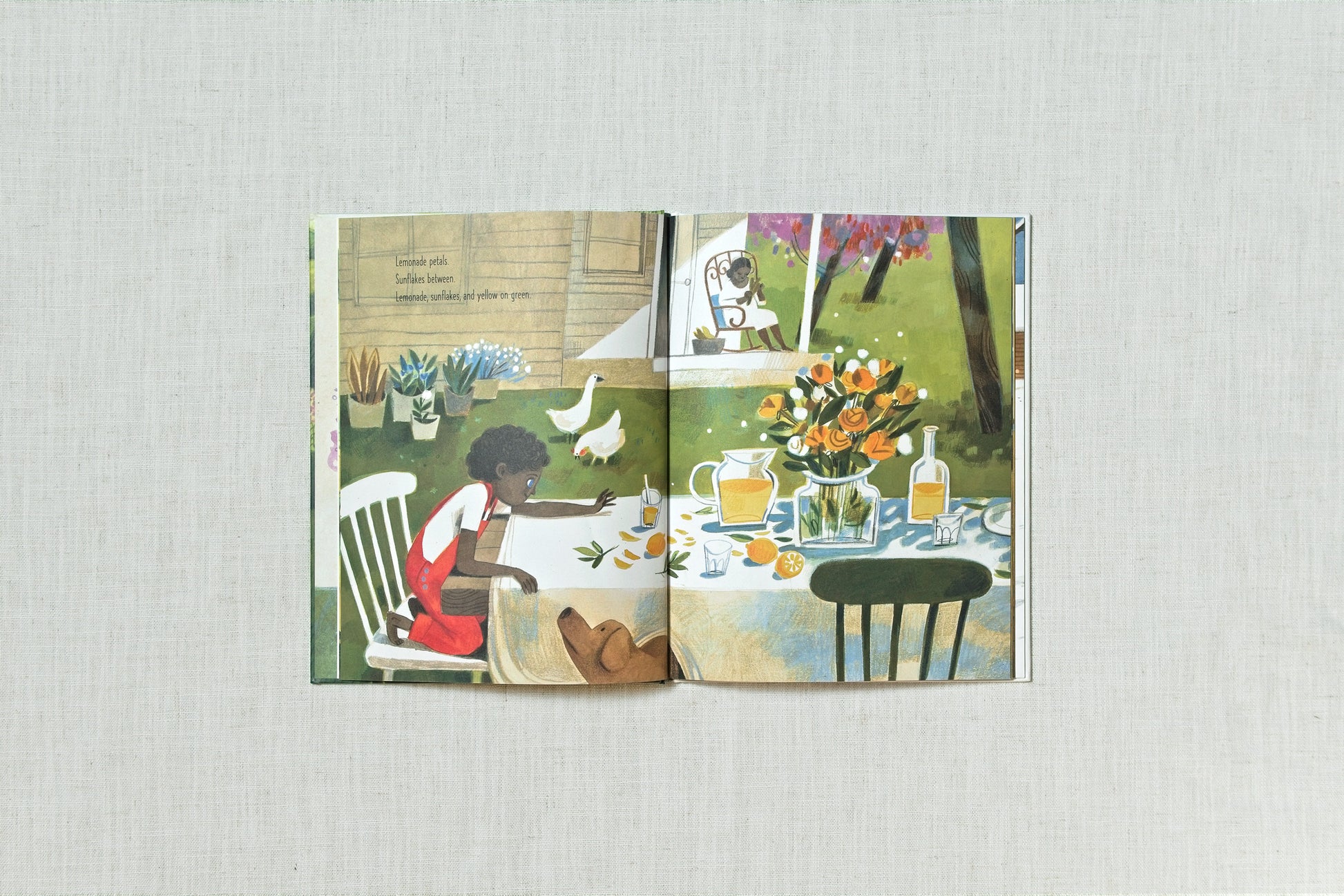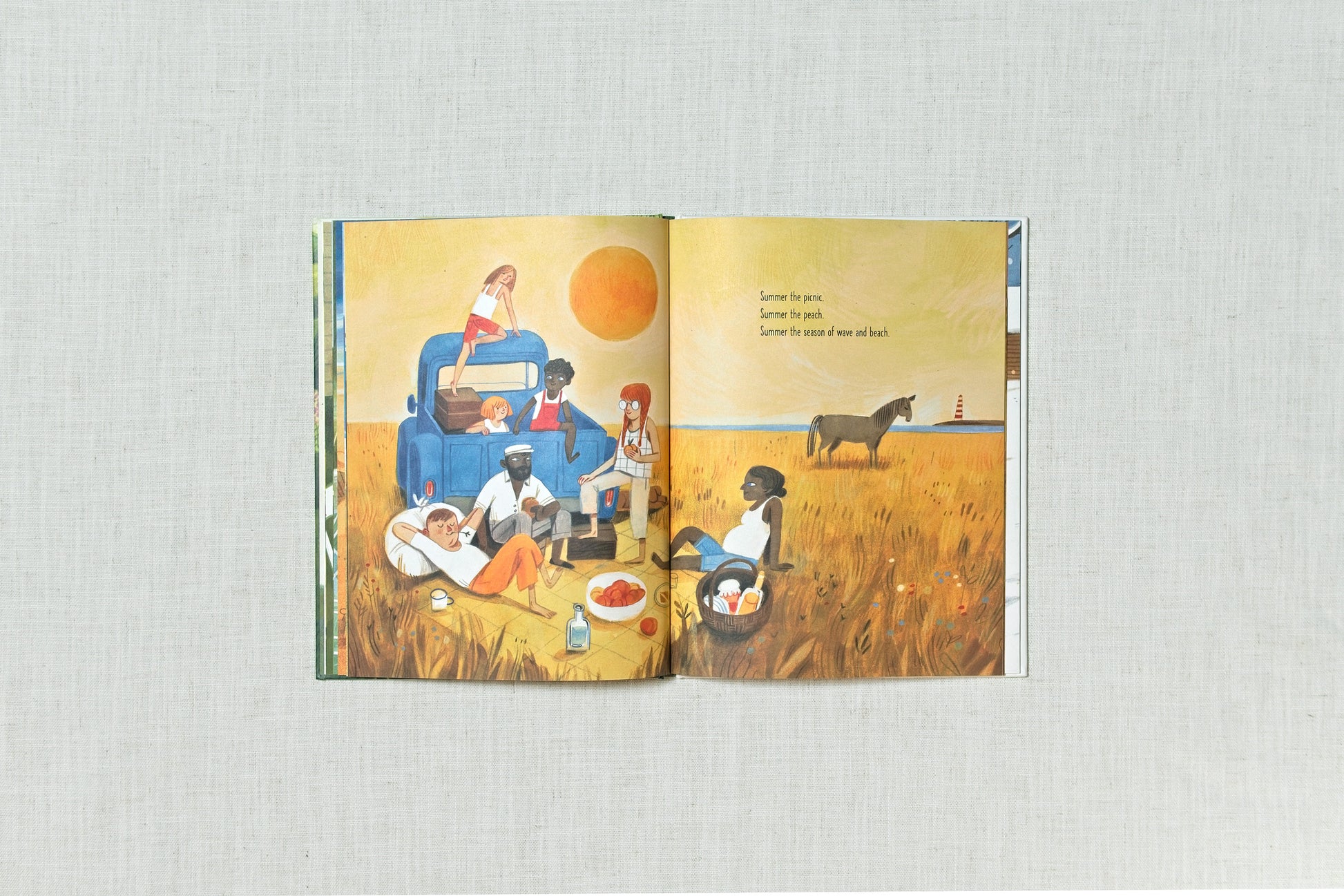 四季は美しい色彩に溢れていること、家族の暖かさ、新しいいのちの始まりの嬉しさを感じる絵本です。私のlittle folksたちは自然の中に入るといつもgreen on green(カラーの重なり)を探して遊んでいます。